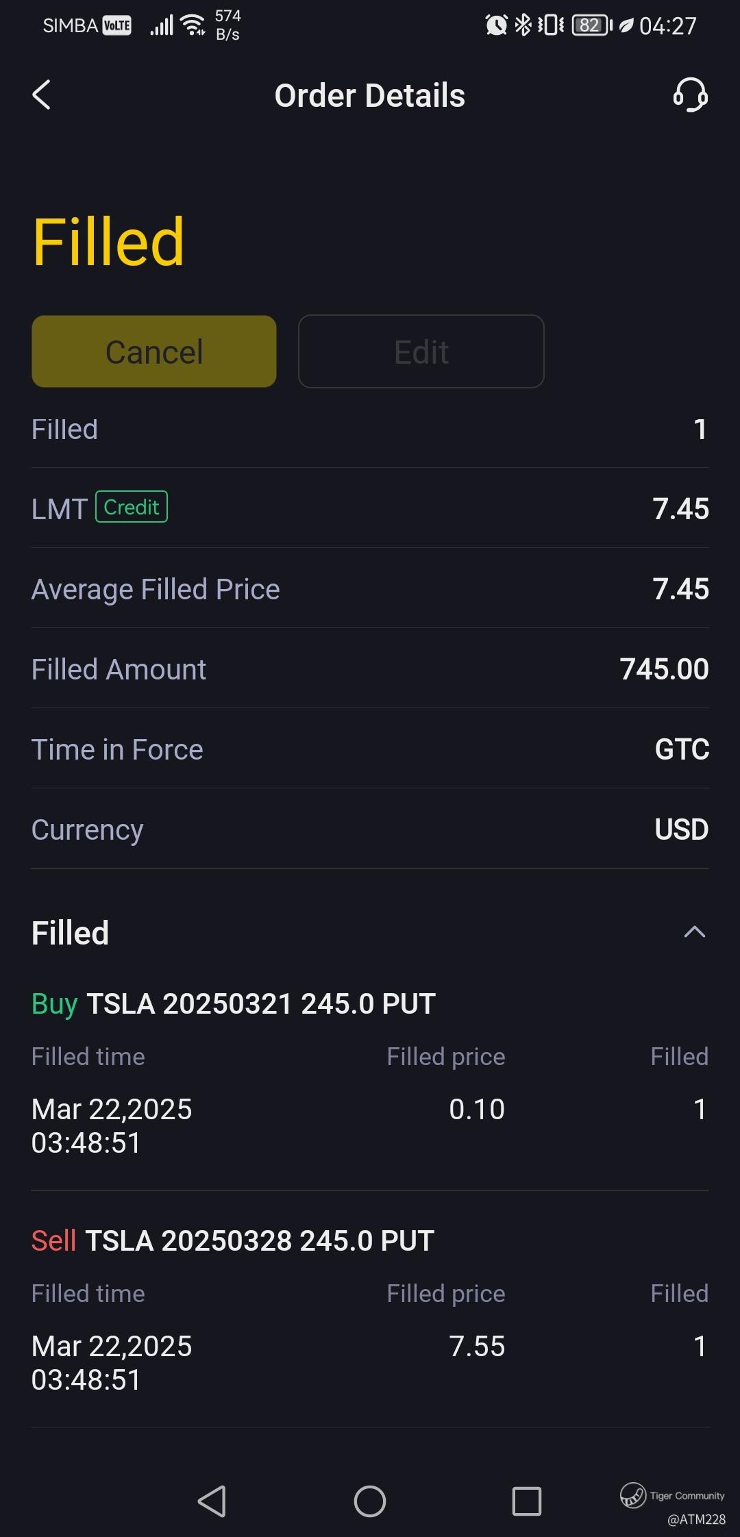 STO next week $TSLA 20250328 245.0 PUT$ for 7.55,