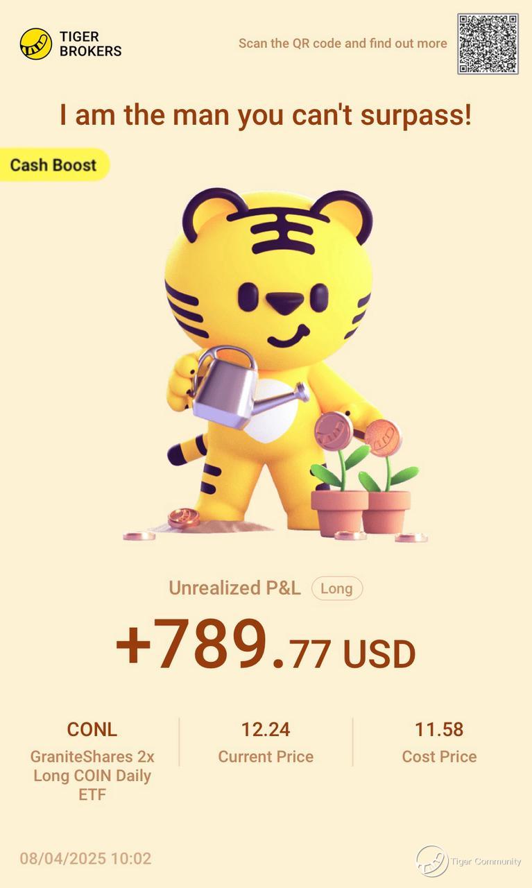 $GraniteShares 2x Long COIN Daily ETF(CONL)$ This price is a total bargain. I’ve already started building my position and loading up. Feels like it’s about to bottom out and bounce back hard. Just gotta sit tight and wait for it to take off,easy money coming!