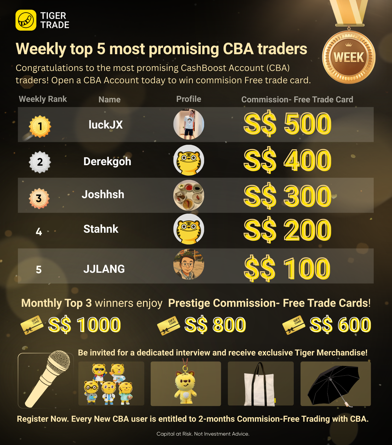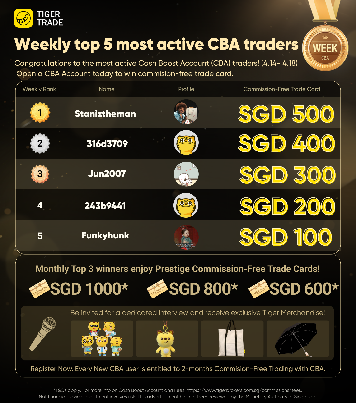 Weekly Rewards of Commission-Free Trade Card ranging from SGD 100~SGD 500!