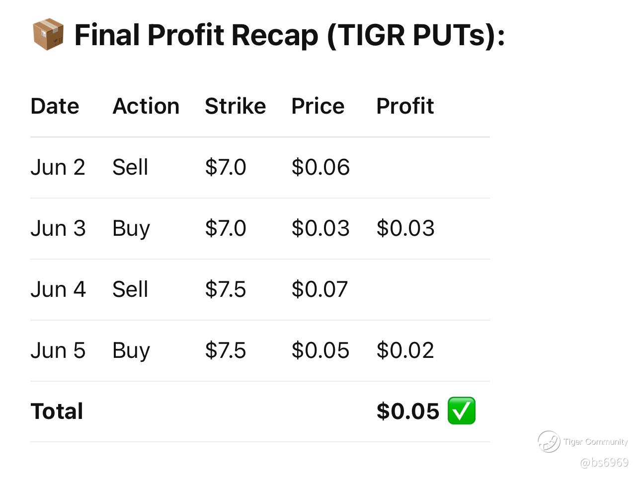 💸 June 4 & 5 – Rinse and Repeat with TIGR $7.5 PUTs