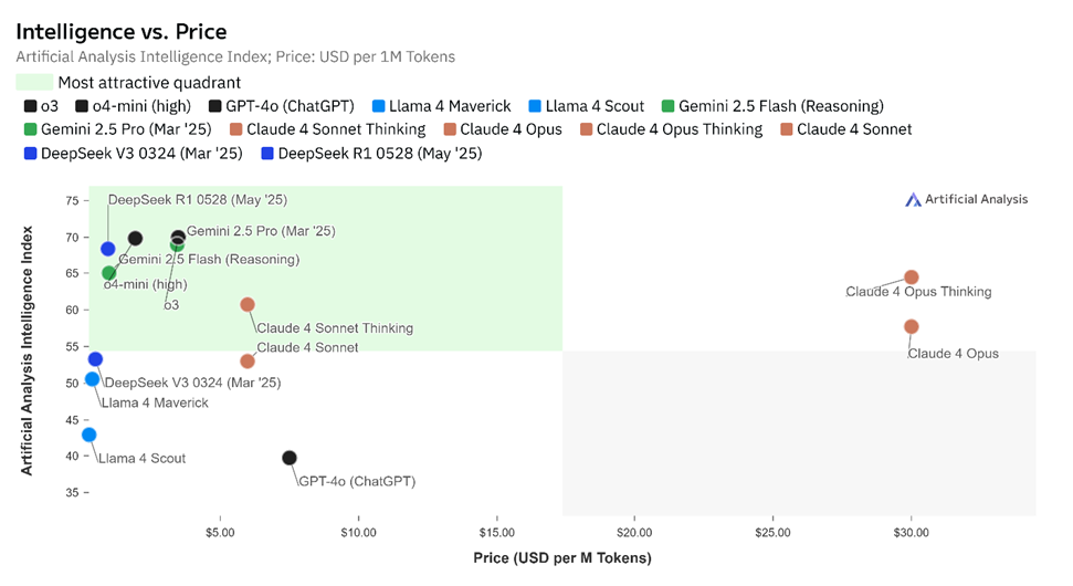 Alphabet’s own position within the AI space is one that appears to be overlooked. Alphabet’s latest Gemini model is highly competitive for both intelligence and cost of use based on aggregate scores across multiple benchmarks.