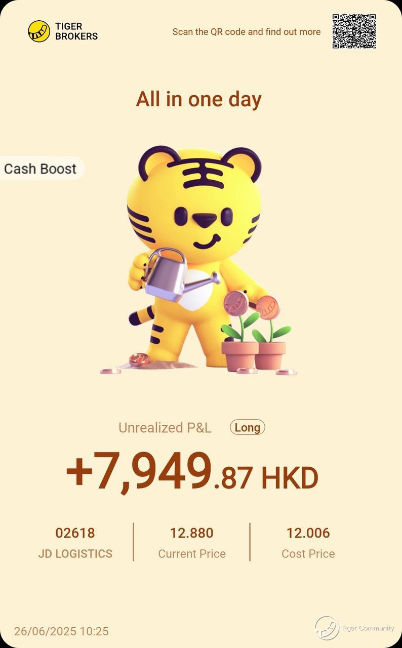 $JD LOGISTICS(02618)$ delivers 7,949.87 HKD in one day! Price at 12.880 HKD shows strong momentum. As a top integrated supply chain provider, its smart warehousing and delivery network excelled during 618 sales. Logistics digitalization is accelerating!