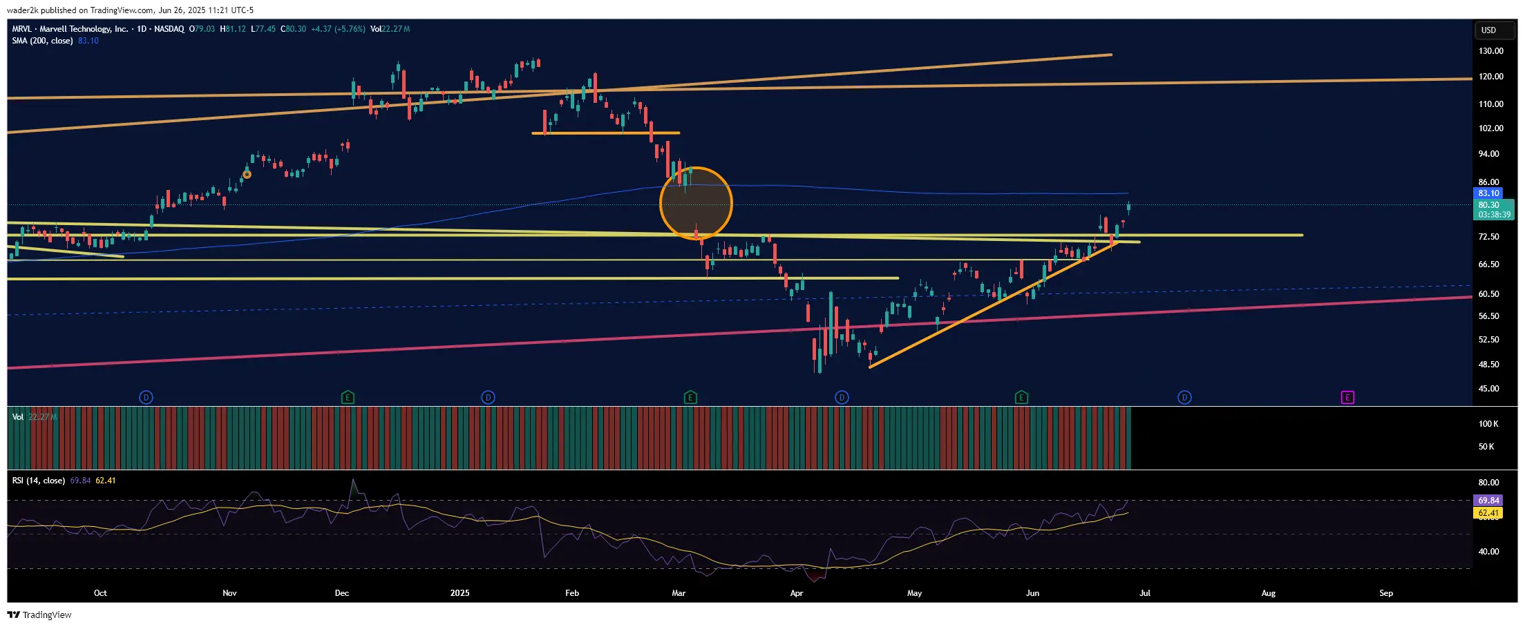 $Marvell Technology(MRVL)$ What a wake-up call! $Micron Technology(MU)$ 's stellar earnings got strangled by MM's option games, but I'll take $Marvell Technology(MRVL)$ 's rally any day. That 88-90 gap needs filling like yesterday, with 200 SMA glaring at 83.10. $Advanced Micro Devices(AMD)$ 's turn coming soon, mark my words.