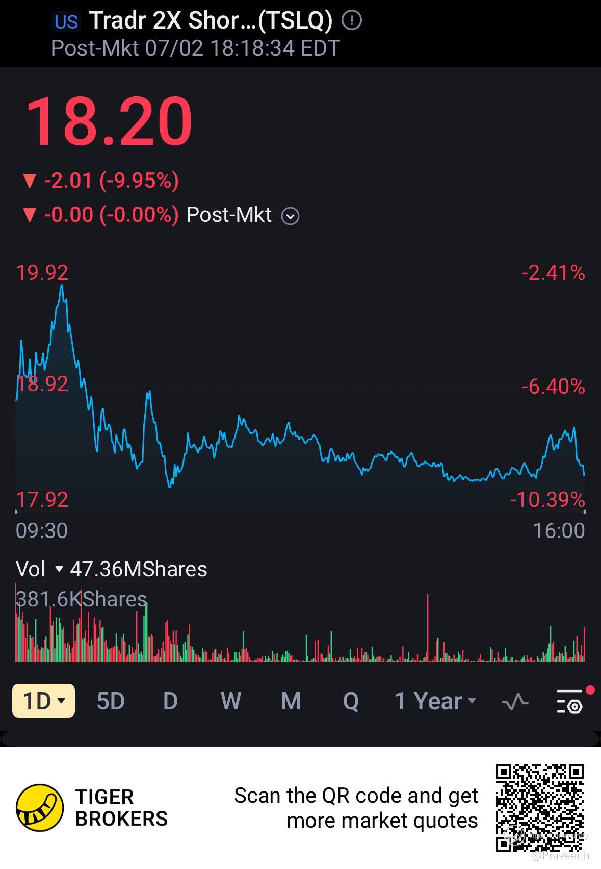 $Tradr 2X Short TSLA Daily ETF(TSLQ)$  think on the Tesl