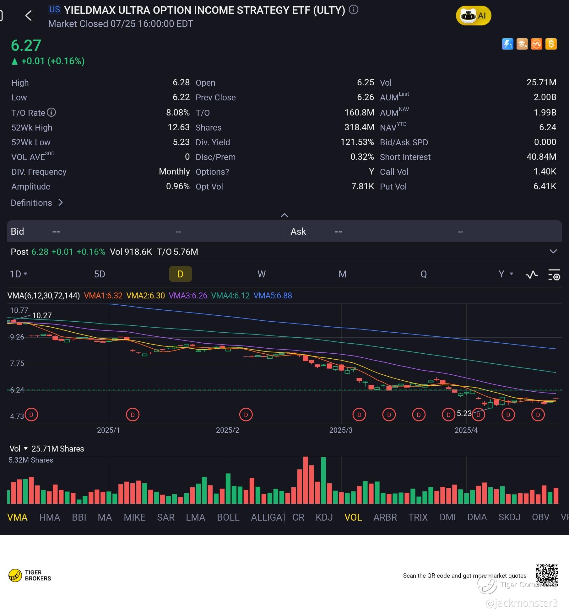 $YIELDMAX ULTRA OPTION INCOME STRATEGY ETF(ULTY)$ 2.0 aum
