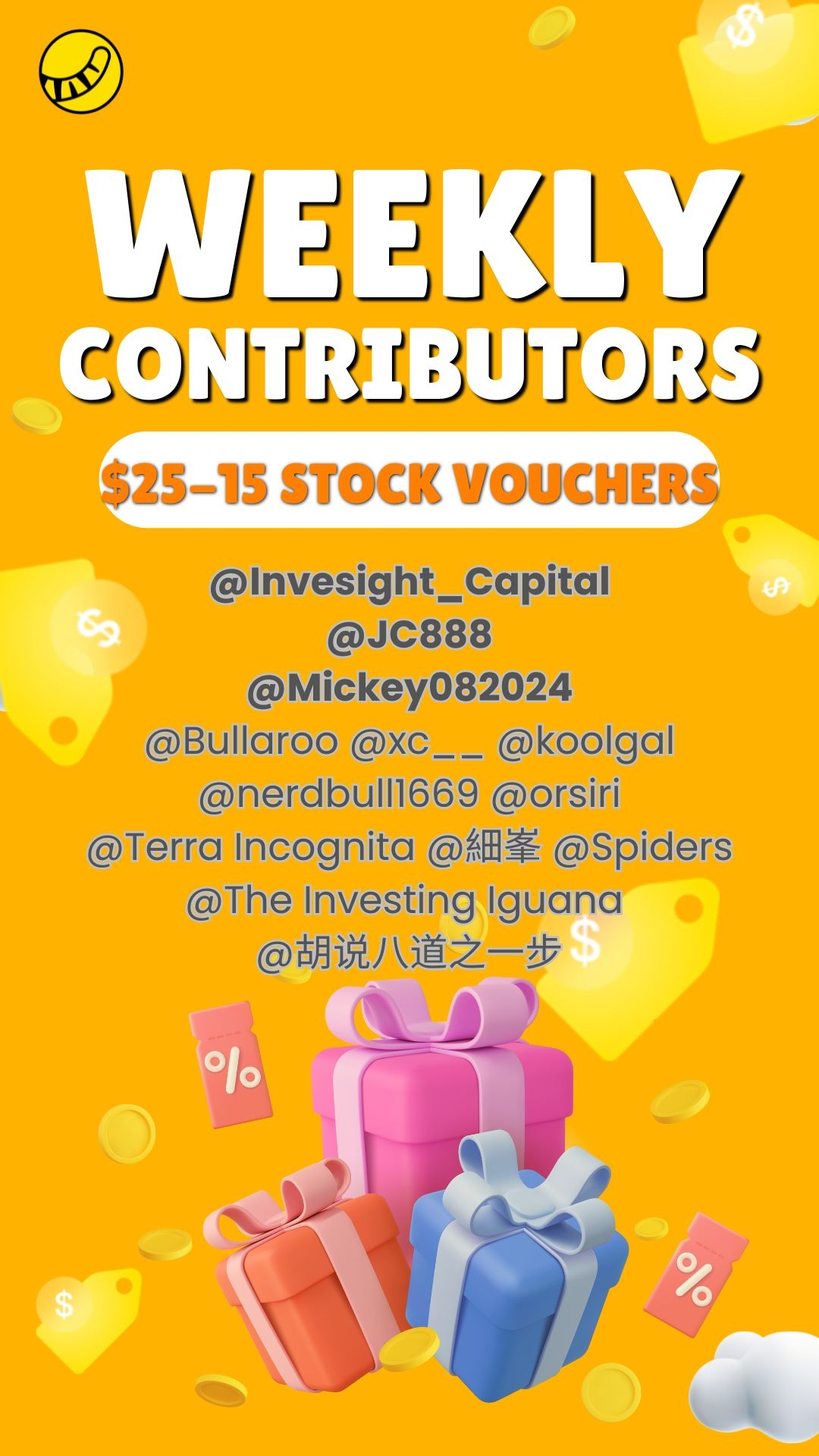 Weekly Top Contributor ($15 stock voucher):