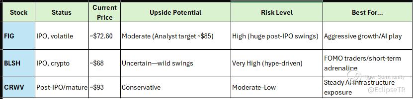 Verdict: If you're aiming for a rebound in a growth/AI-driven IPO, Figma could offer good upside but only if you're prepared for wild swings.