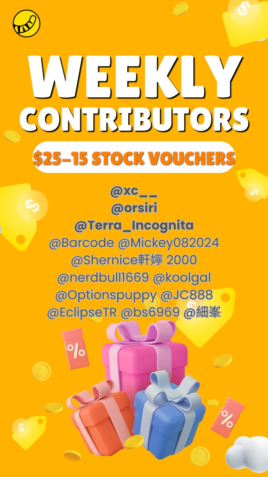 Weekly Top Contributor ($15 stock voucher):