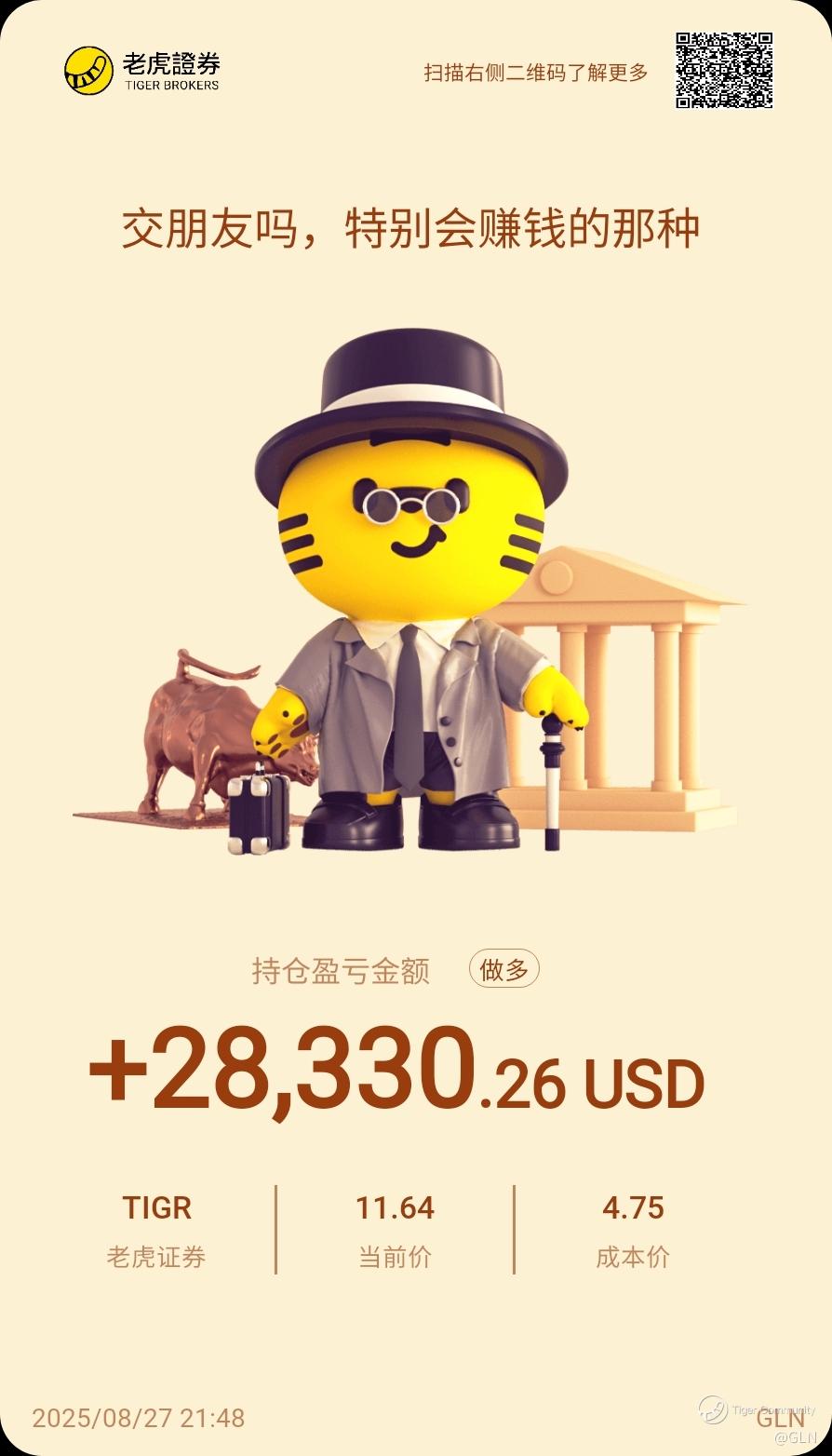 $老虎证券(TIGR)$ even the stock price is down, it still my biggest profit