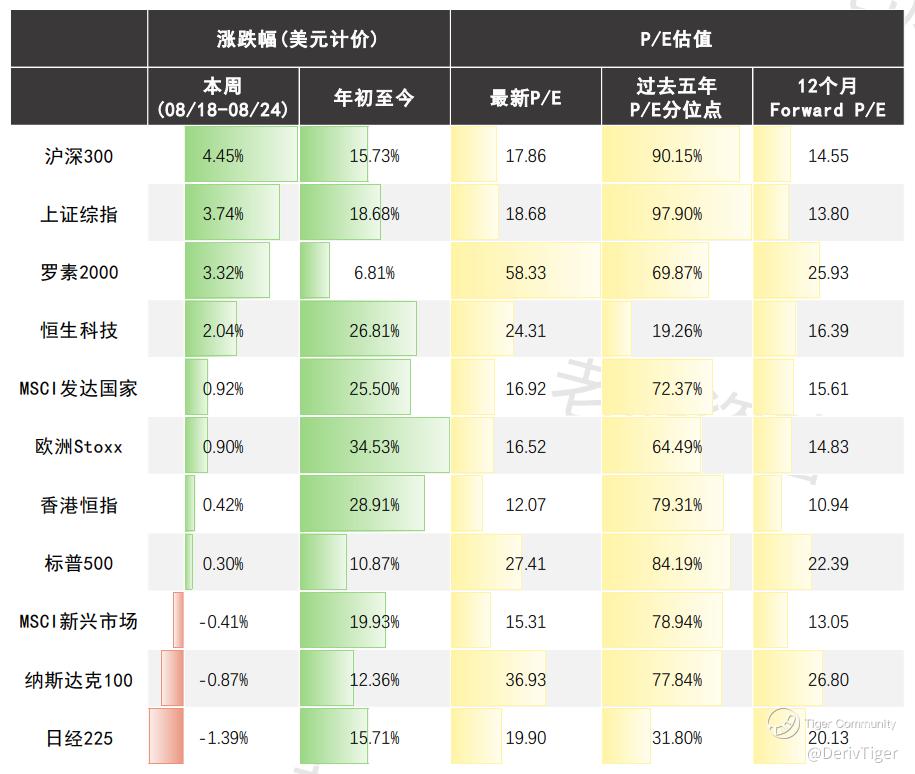 Last week, global capital markets posted mixed performance, with the overall pattern of “East rising, West wavering” continuing. Two key themes dominated the market: Fed Chair Jerome Powell’s dovish remarks at the Jackson Hole symposium, and the sustained rally across Greater China assets. Let’s look at them one by one.