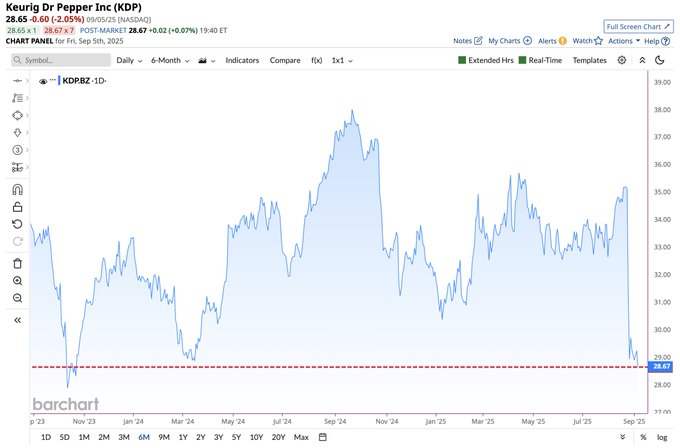 Dr. Pepper falls to its lowest closing price since October 2023 📉📉