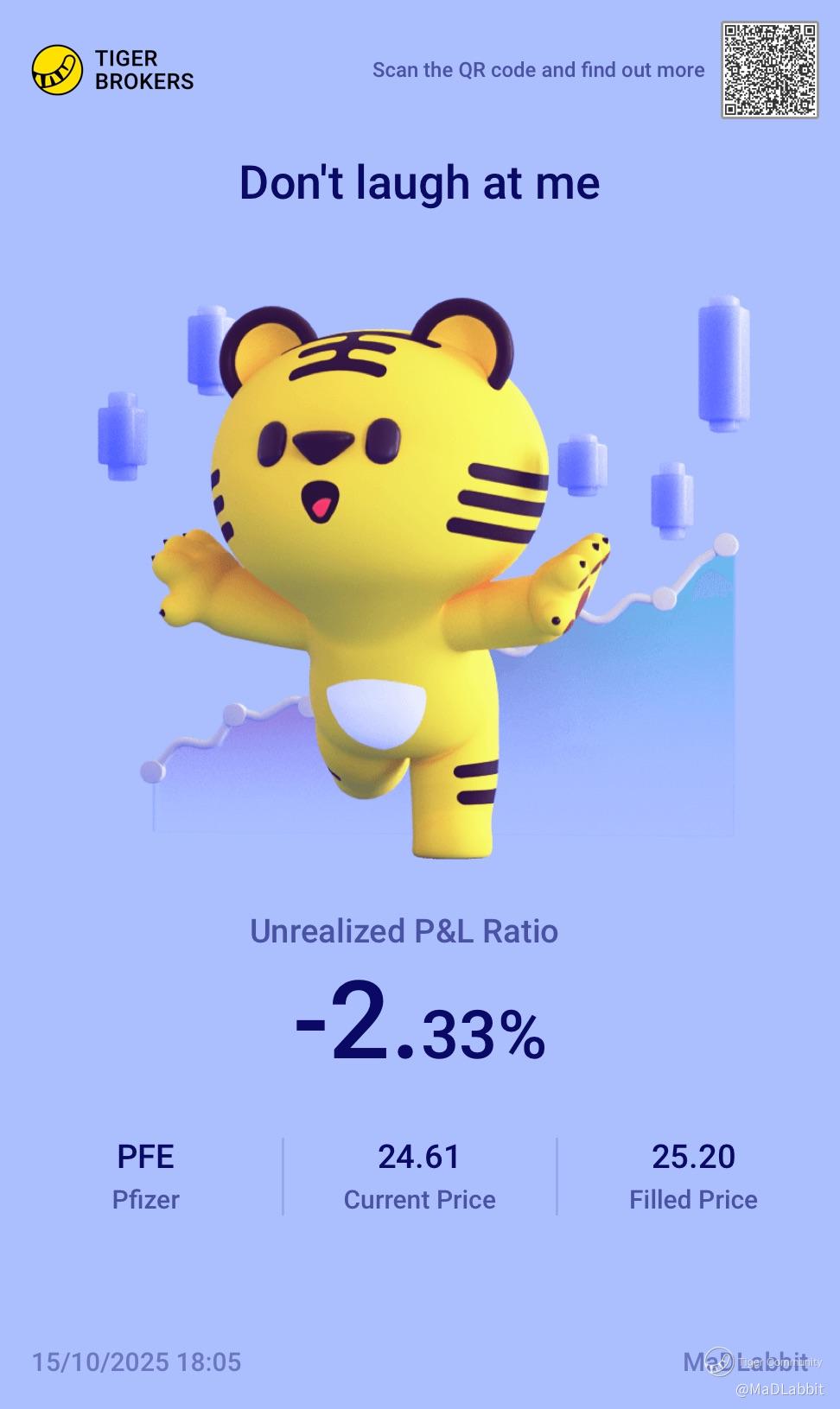 $Pfizer(PFE)$ I started a position With Pfizer, this guy been beaten down and paying dividends about 6+%. If you think in the short term Semi stocks or AI related stocks will drop then this might just be a safer play to rotate some position to it.