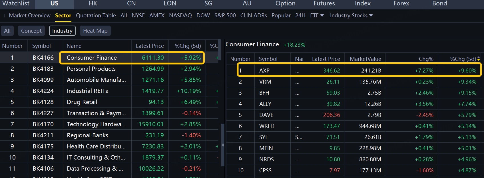 The best-performing concepts is Consumer Finance. Considering the different perceptions of the stock, this time TigerPicks chose $American Express(AXP)$ to have a fundamental highlight to help users understand it better.