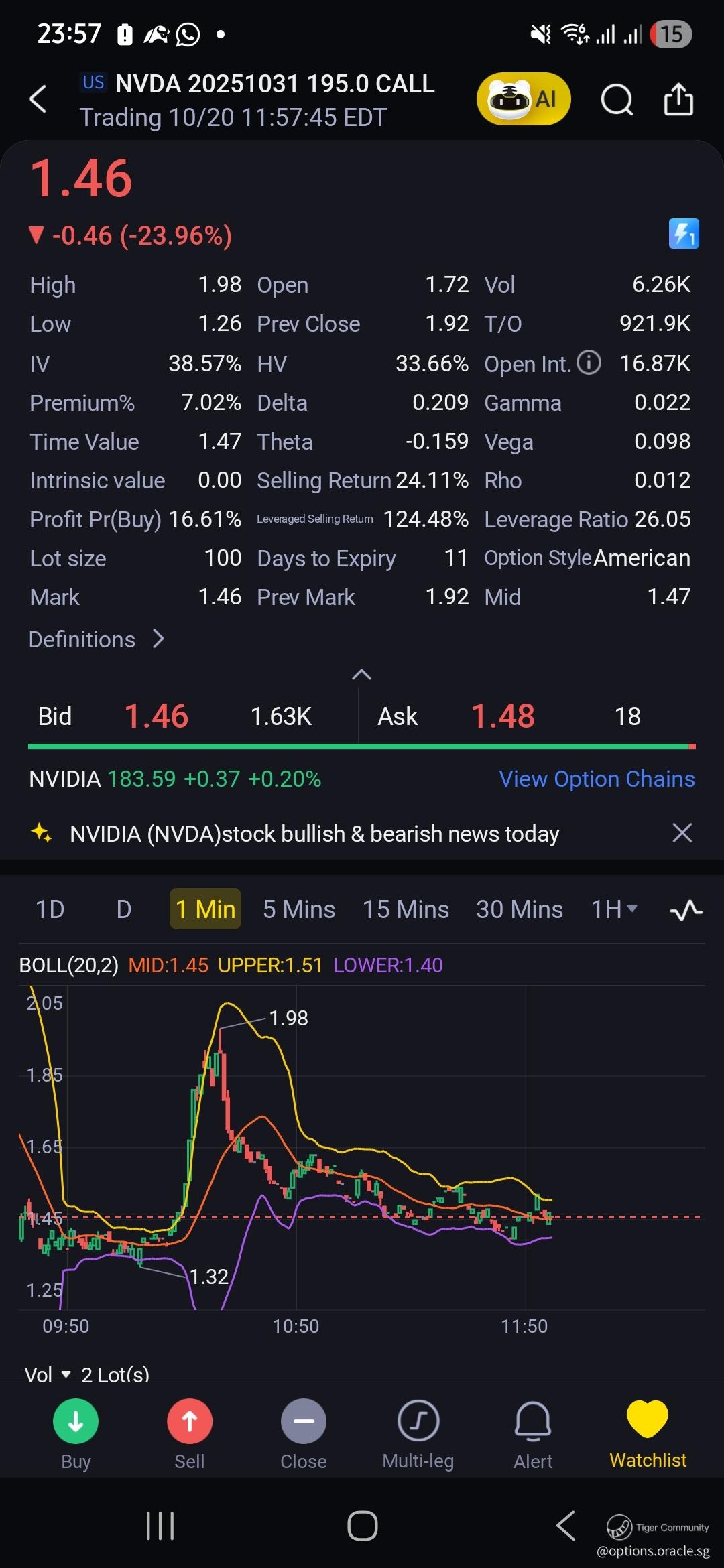 Rolled my previous position expiring to secure profit and shift my strike up from 192.5 to 195.