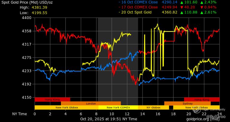 Recent gold price chart showing the October 2025 peak and pullback (Source: GoldPrice.org)