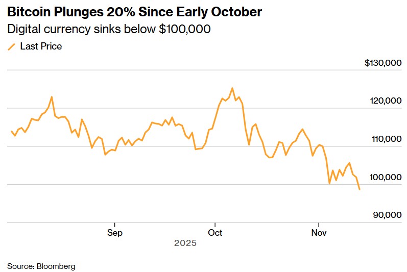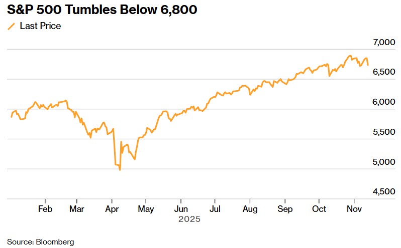 With optimism about the shutdown’s resolution priced in, concern about valuations emerged, prompting a selloff in high-flying tech giants. Under the surface, some market observers pointed to a rotation into more defensive names. It was the third time in two weeks the S&P 500 fell more than 1%. Bitcoin sank below $100,000 and is down over 20% since early October.