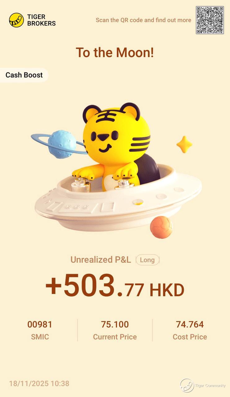 $SMIC(00981)$ Nice little gain on SMIC! Capitalizing on chip boom & homegrown substitution. Q3 capacity hit 95.8% — production lines are packed! Snagged the Contra688 cash vouchers too, free money feels good. Staying long for the next lift-off!