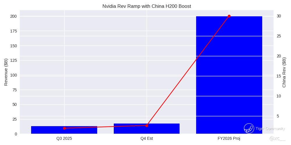 Export escape turbo: H200 green light with 25% fee unlocks $10-15B China revenue in 2026, ramping shipments 20% as approved customers like Baidu grab stock β bookings to $600B if demand holds.