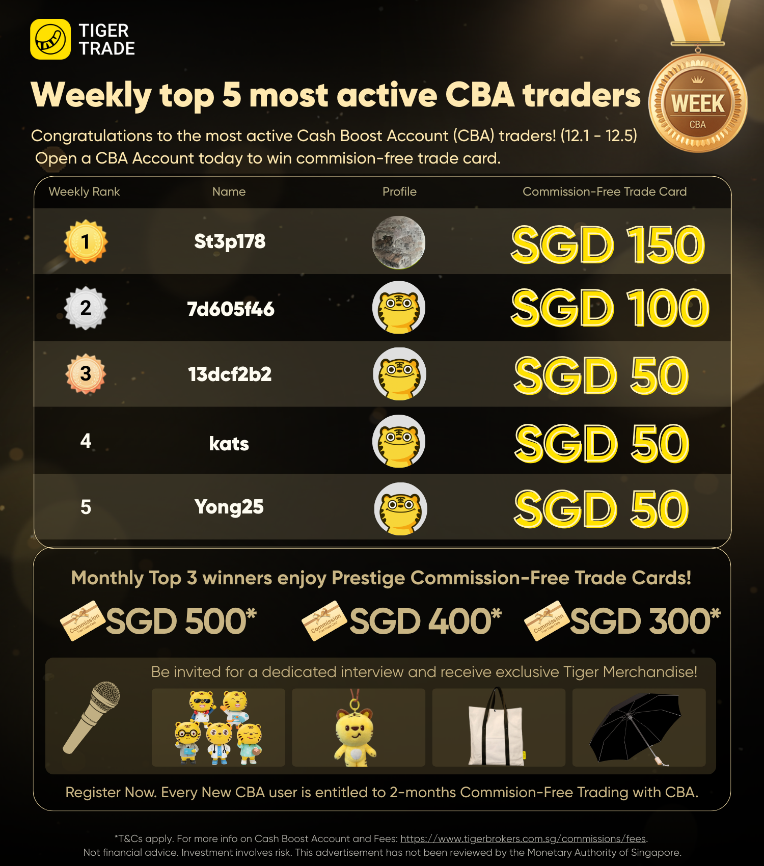 For SG users only, Welcome to open a CBA today and enjoy access to a trading limit of up to SGD 20,000 with unlimited trading on SG, HK, and US stocks, as well as ETFs.