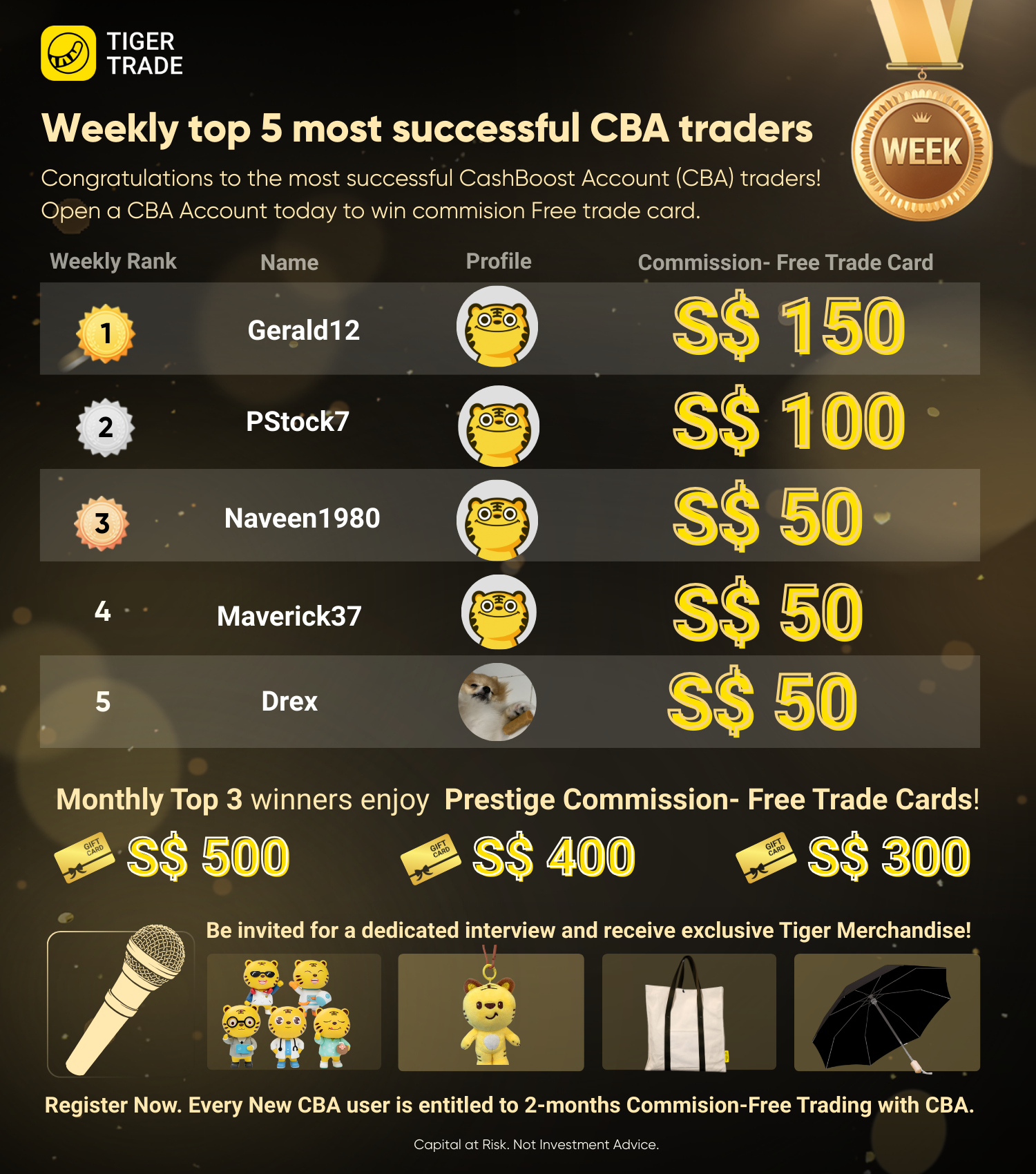 Weekly Rewards of Commission-Free Trade Card ranging from SGD 50~SGD 150!