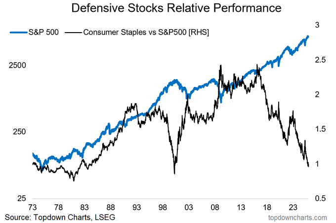 Staples are described as defensive for this reason (healthcare, utilities, and sometimes REITs and gold miners, among others also fall into this category). $S&P 500(.SPX)$
