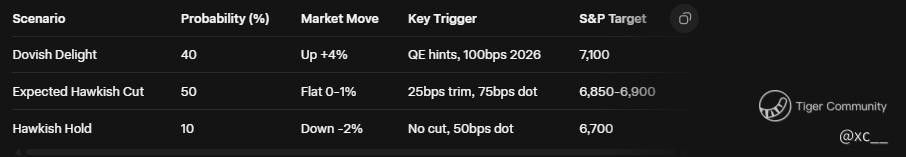 $Powell Max Limited(PMAX)$ Markets are teetering on a knife's edge as the FOMC unleashes its December decision at 2 p.m. ET, with an 88% priced-in shot at a 25 bps trim to 3.50%-3.75% β a move that could juice risk assets if Powell's 2:30 p.m. presser drops dovish gems like QE hints or 2026 easing openness. Polymarket's 97% bet on a 2025 rate reduction screams crowded positioning, but this packed house risks a brutal unwind if hawkish signals sneak in, like a tighter dot plot or inflation vigilance vibes. With QT's $1T liquidity lava flowing and S&P clinging to 6,859 highs, this FOMC fireworks could catapult equities up 4% on dovish delight, flatline on as-expected hawkishness, or crater 2% if Powell plays hardball. As VIX cools to 22.80 amid AI earnings buzz, let's rip the risks, bull/bear brawls, and my call on the reaction frenzy β emojis blazing, opportunities raw. π€π£
