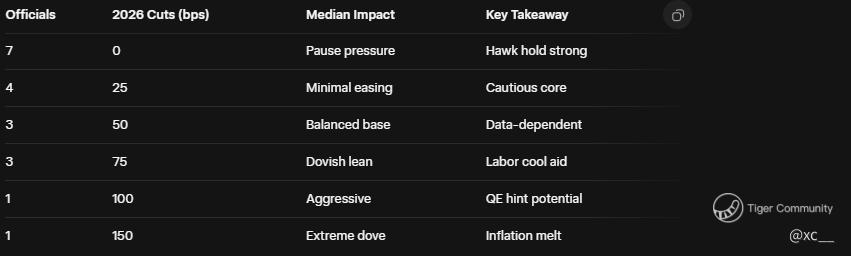 π Conclusion Fed's cut confirms dovish 2025, but hawkish 2026 pause dings rises β risk assets reel short-term, but liquidity lava limits downside for resilient rebound. Hawkish pause, market pulls back β rises pause, no roar ahead. π€π