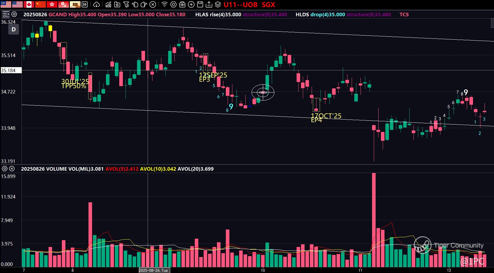 Reference to $UOB-U11: From late July to mid‑Sep 2025, price formed lower highs & lower lows 📉 — Classic signs of a healthy downtrend. Volume expanded on sell‑offs, contracted on rebounds 🔻. EP3 zone (12SEP25) showed weak recovery momentum, reinforcing bearish structure. Textbook trend exhaustion[LOL].