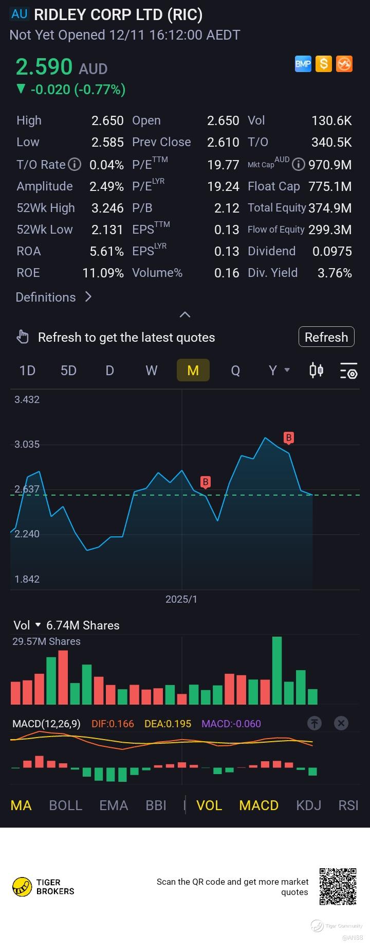 $RIDLEY CORP LTD(RIC.AU)$