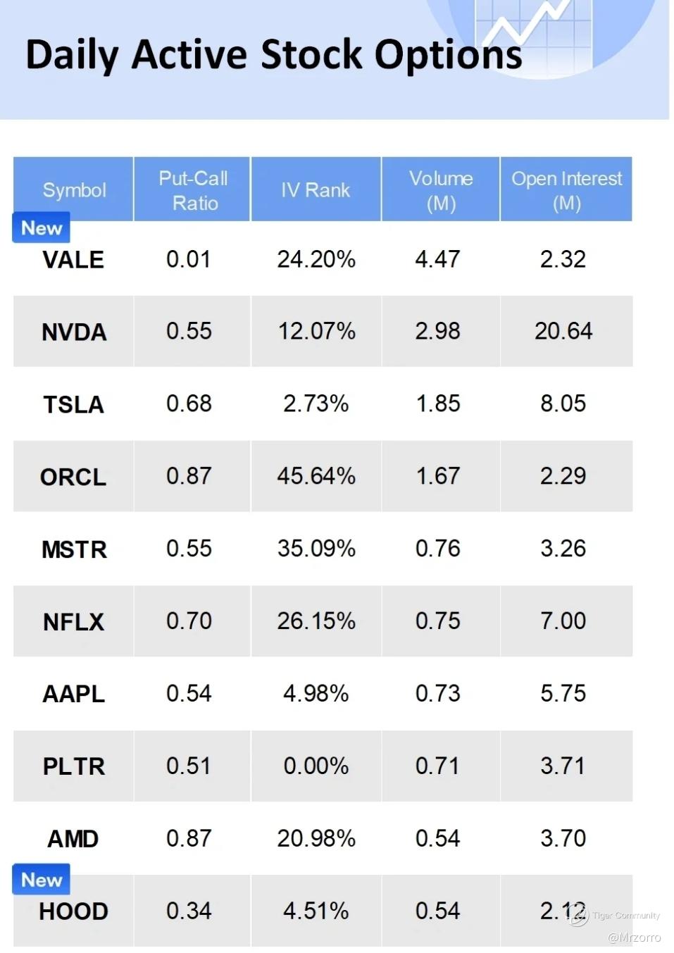 $Oracle(ORCL)$ saw strong activity with a bearish put/call ratio of 0.87 and a high IV rank of 45.64%, indicating downside protection as volume reached 1.67 million contracts versus 2.29 million in open interest. Shares plunged 11% following an upward revision to its fiscal year capital spending outlook by $15 billion and guidance that missed analyst targets, highlighting potential delays in AI-driven growth.