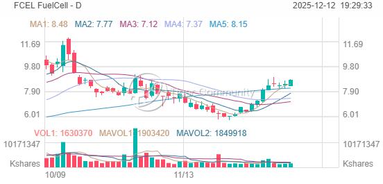 FCEL closed at $8.75 on December 12, 2025 (ET), gaining +3.43% (+$0.29) from the previous session.