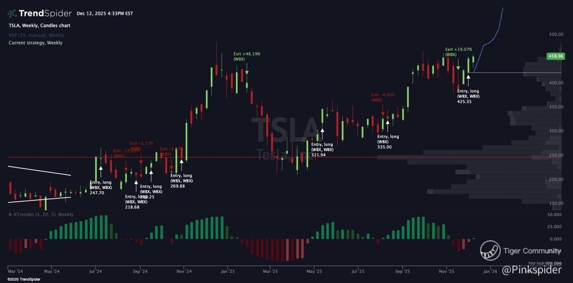 $TSLA finished the week strong and the weekly BX closed green. 🟢