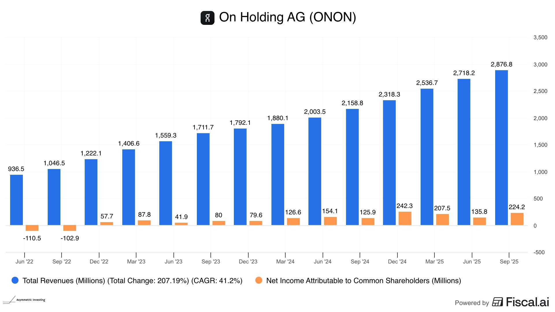 Why debate the recovery/value of $Lululemon Athletica(LULU)$ and $Nike(NKE)$ when you can just buy $On Holding AG(ONON)$ for 4.4x sales and 31x forward earnings?