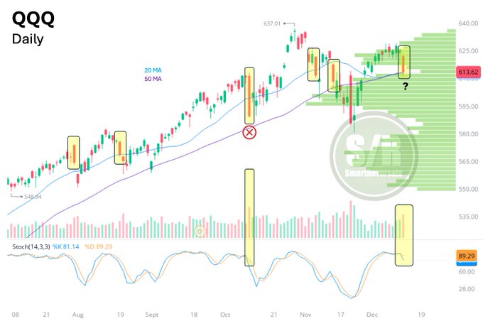 $Invesco QQQ(QQQ)$ : Long candlesticks indicate momentum, and the latest one, combined with the Stochastic crossover, suggests bearish continuation.