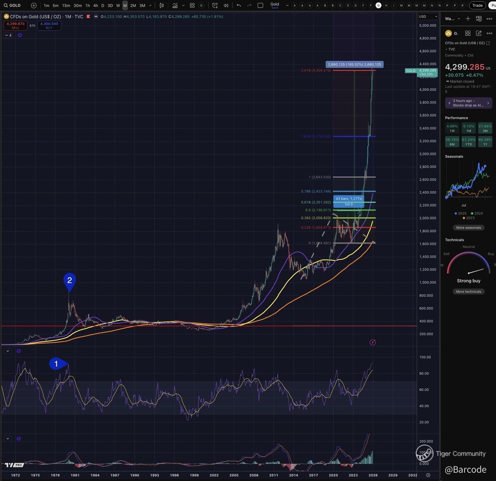π§ One important risk marker I am watching closely is momentum. Gold has just printed its highest monthly RSI since 1973, over 52 years ago. The last time momentum reached these extremes, the subsequent phase was a prolonged and grinding drawdown. That historical reference matters, but context matters more. The 1970s followed a tightening regime with rising real rates and no sustained central bank accumulation. Todayβs environment is the opposite, structurally suppressed real yields, persistent official sector buying, distorted supply, and systematic flows dominating price discovery. The signal here is not that the trend is ending, but that upside will not be linear. Late-cycle acceleration increases volatility, stretches pullbacks, and rewards patience rather than leverage.