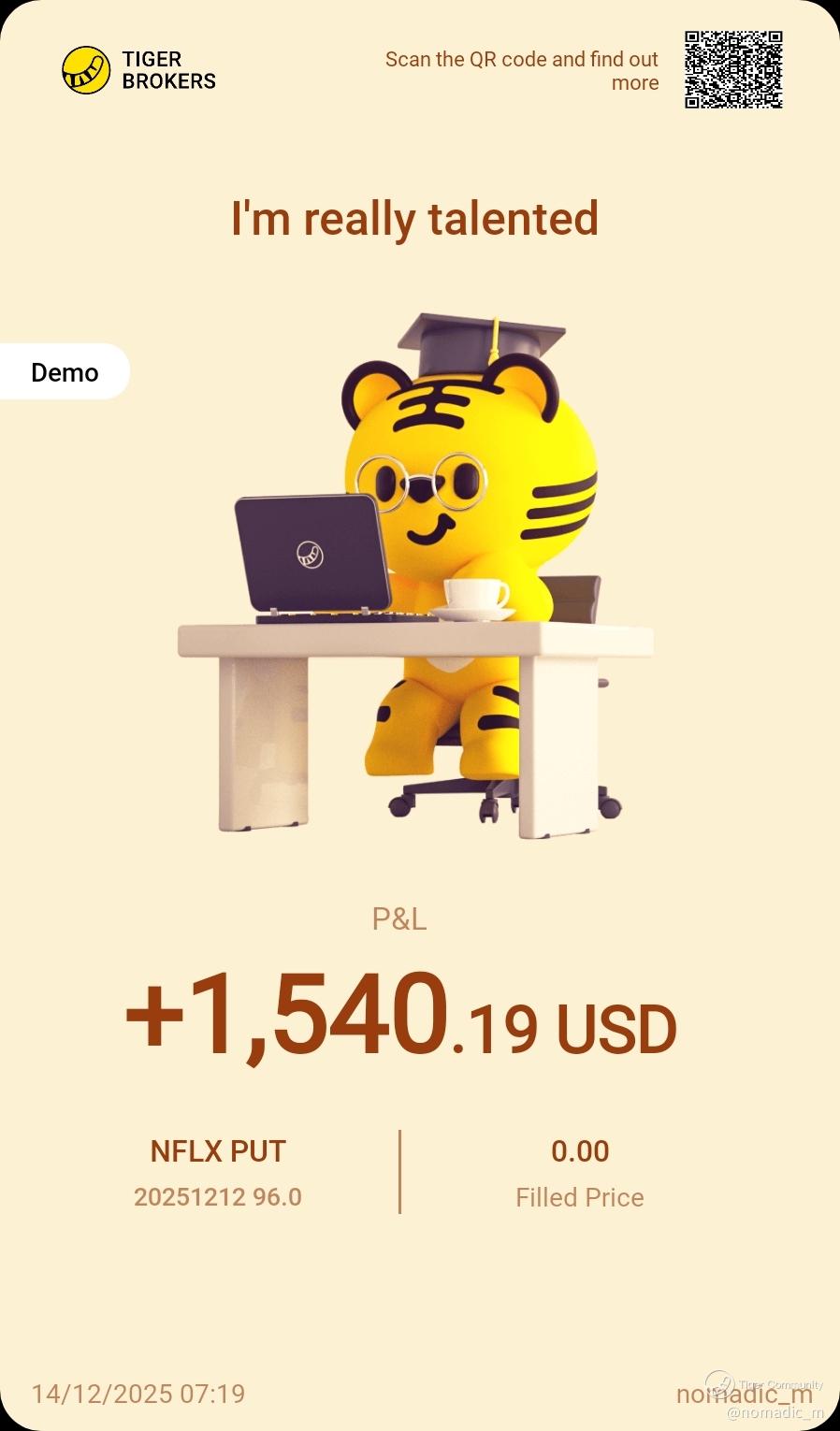 $NFLX 20251212 96.0 PUT$ this put got assigned at $96. but will hold & sell covered call to earn premium income. no biggie