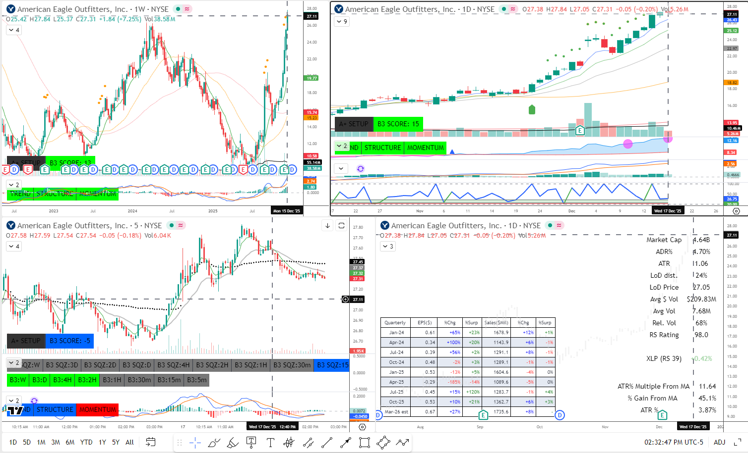 - Some of them, eg AEO are super extended now. $ANF too, maybe $VSCO . AEO is almost 12x its ATR from its 50SMA, whilst 10X is already very extended (another great tip from @jfsrev ).