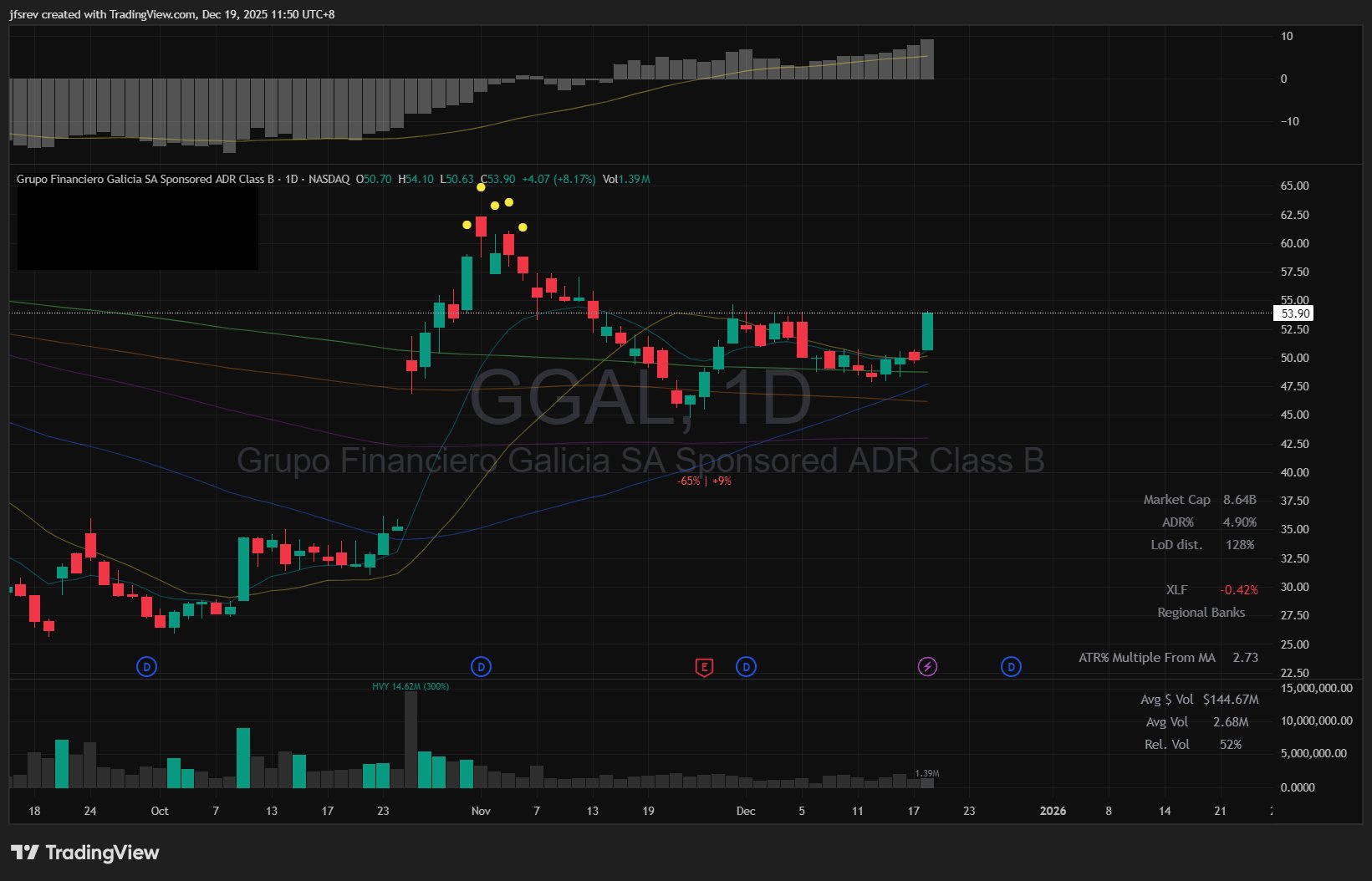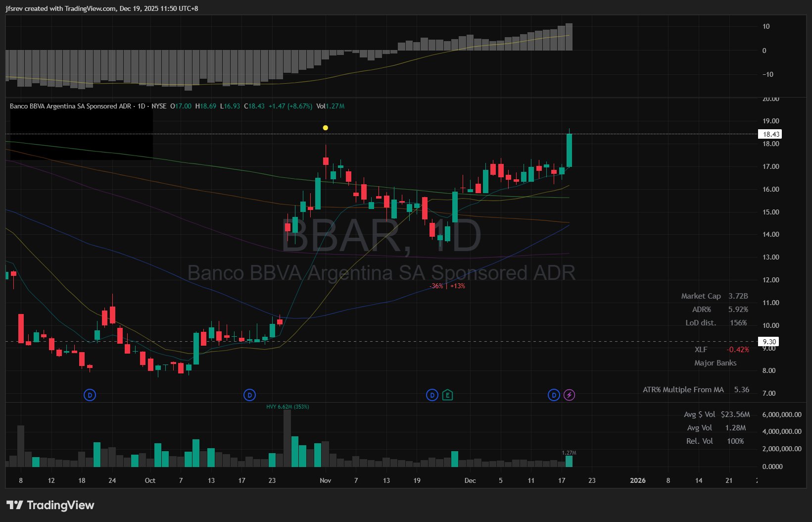Following another session of consolidation with clear VARS despite the broader market sell-off, Argentine banks broke out of their tight, spring-coil consolidation and closed at the highs of the day.