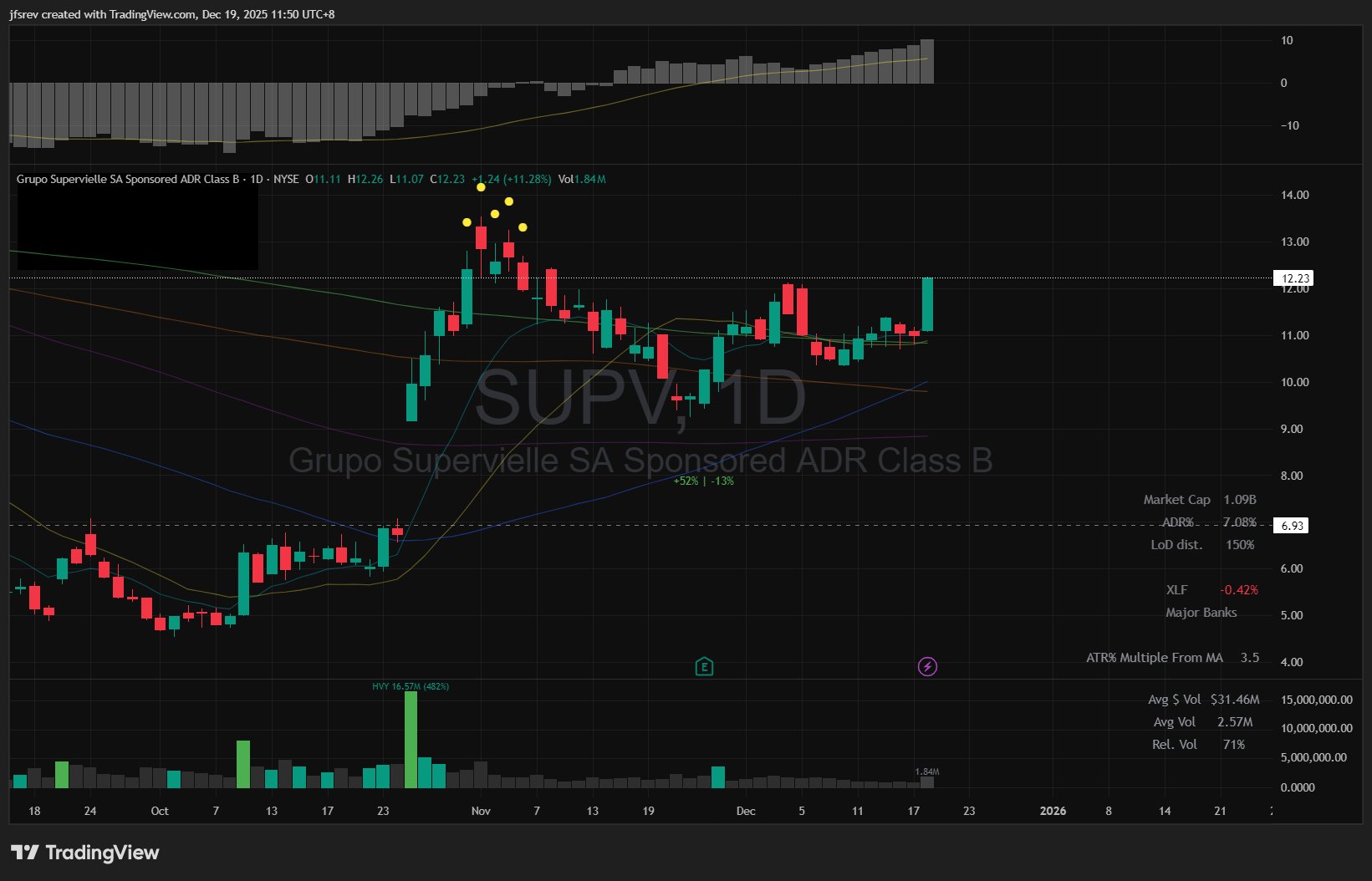 $BBVA Banco Frances SA(BBAR)$ $Grupo Financiero Galicia SA(GGAL)$ $Grupo Supervielle SA(SUPV)$ — Strongest intraday-moving group $Global X MSCI Argentina ETF(ARGT)$