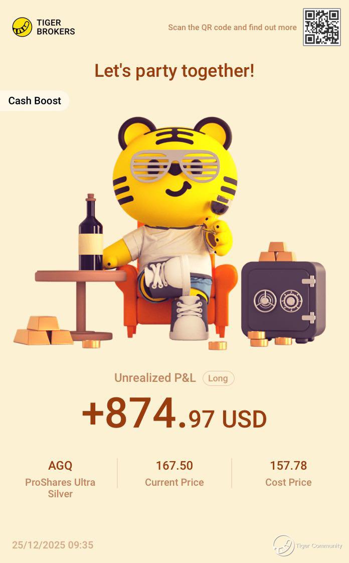 $ProShares Ultra Silver(AGQ)$ Looking back at the 10-year cycle of precious metals, it’s pretty clear that silver is still massively undervalued compared to gold . Gold has already run hard this cycle, but silver still has a lot of upside left — and once the catch-up move really kicks in, the leverage can be huge .