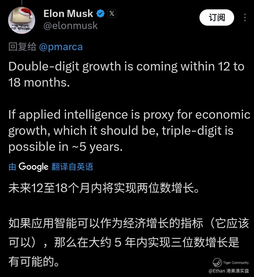 Elon Musk recently stated that, at the macro level, the U.S. economy could grow over 10% in the next 12ā18 months, and potentially double over the next five years.