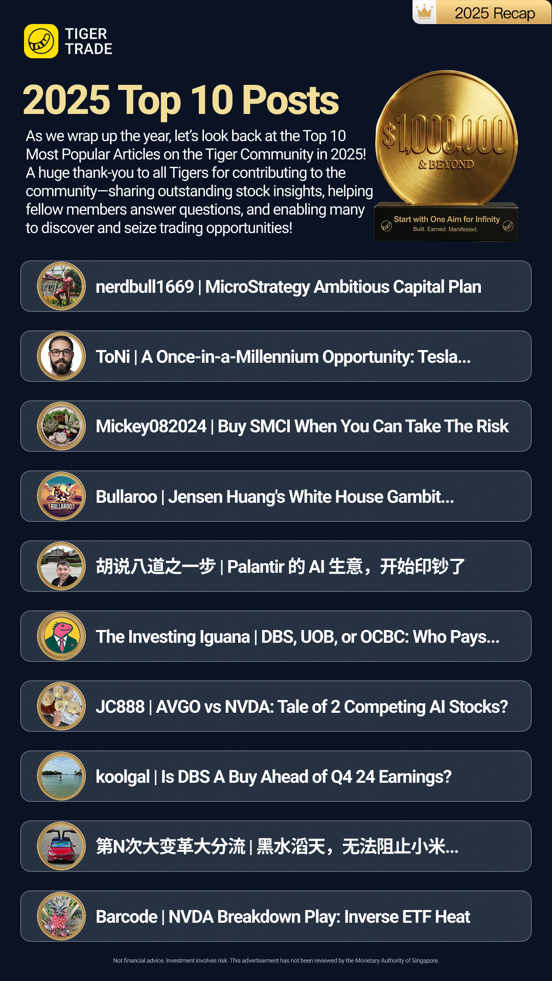 A huge thank-you to all our Tigers for contributing to the community—sharing outstanding stock insights, helping fellow members answer questions, and enabling many to discover and seize trading opportunities along the way.