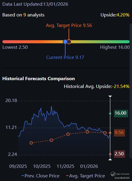 Technical Levels: Resistance sits near $11.50. A breakout on positive Cobra scaling news could target the 52-week high of $19.07, while a timeline delay risks a drop toward $8.80 support.