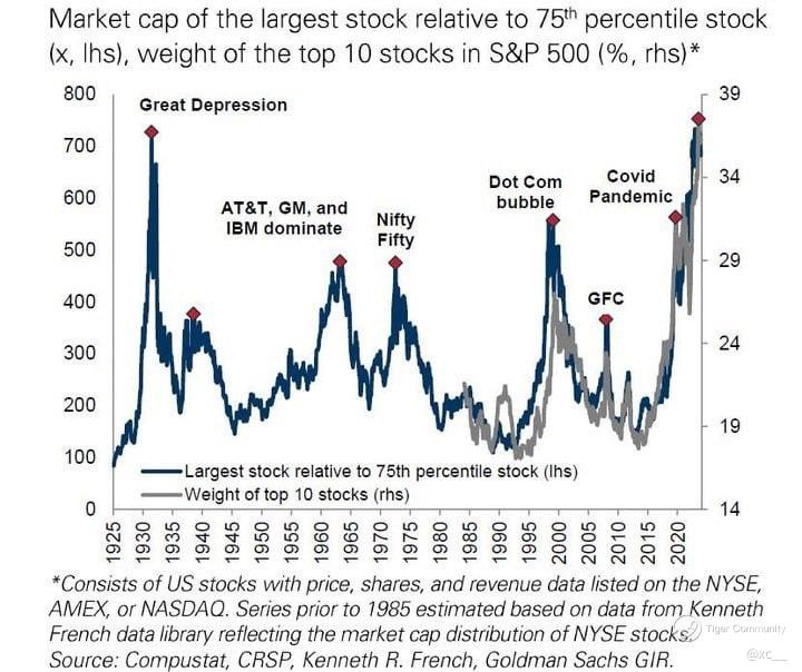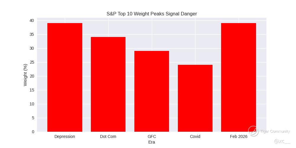 $S&P 500(.SPX)$ The S&P 500's dazzling run hides a ticking time bomb β mega-cap stocks like Nvidia and Microsoft now tower over the pack, with the largest stock's market cap ballooning to 39x the 75th percentile median, while the top 10 heavyweights command 39% of the index's weight. π€ This lopsided dominance echoes perilous peaks from history's darkest market crashes, where a handful of giants drove returns before fragility shattered everything. The chart lays it bare: from the Great Depression's AT&T and GM stranglehold to the Dot Com bubble's Nifty Fifty frenzy, GFC's financial titans, and Covid's pandemic pivots β extreme concentration has always signaled vulnerability, not strength. As of February 19, 2026, US equities versus the world sit at historical dominance extremes, with the imbalance refusing to unwind amid Fed pauses delaying cuts to July and tariff teases crimp global flows 5%. Emerging markets glow resilient, with India's Nifty up 0.5% pulling inflows 10% as dollar dips to 94 unlock diversification wins β but when positioning turns one-sided, rotations erupt without massive catalysts. The story always shifts to "this time is different," but the pattern endures: underneath the surface strength, cracks form as capital-starved sectors wait for their turn. Geopolitical edges add wildcard drags, with Brazil's 1M BTC reserve plan pulling Latin America inflows 8% as nations hedge debasement fears. Let's unpack the dangers, trace historical havoc, and spot where smart money flows next amid this mega-cap mayhem β emerging markets, metals, energy, commodities scream under-owned opportunity as regime shifts brew. ππ‘οΈ