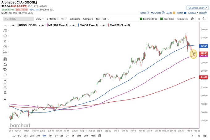 Alphabet $GOOGL fell below its 50-day moving average last week and now sits right at the 100-day 🚨 If that breaks, a return to the 200-day MA might be in play 🤯👀