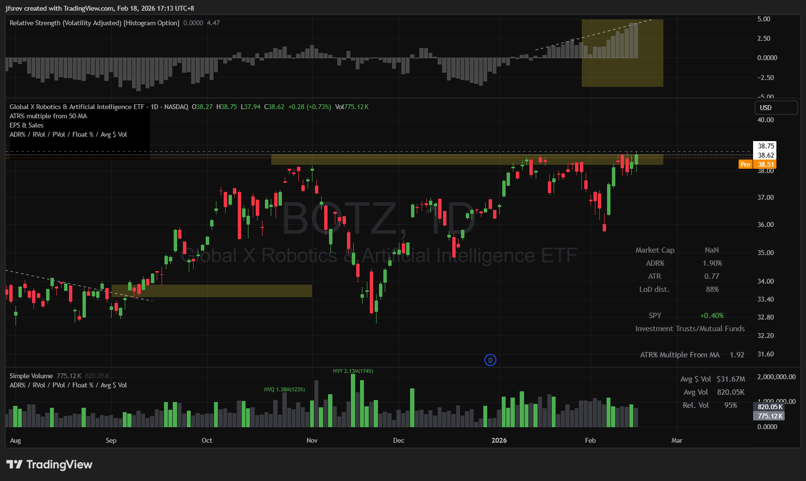 $Global X Robotics & Artificial Intelligence ETF(BOTZ)$ - one of the top 8 strongest groups, closing at a relative strength high with a perfect 100% 1-month RS rating and VARS.