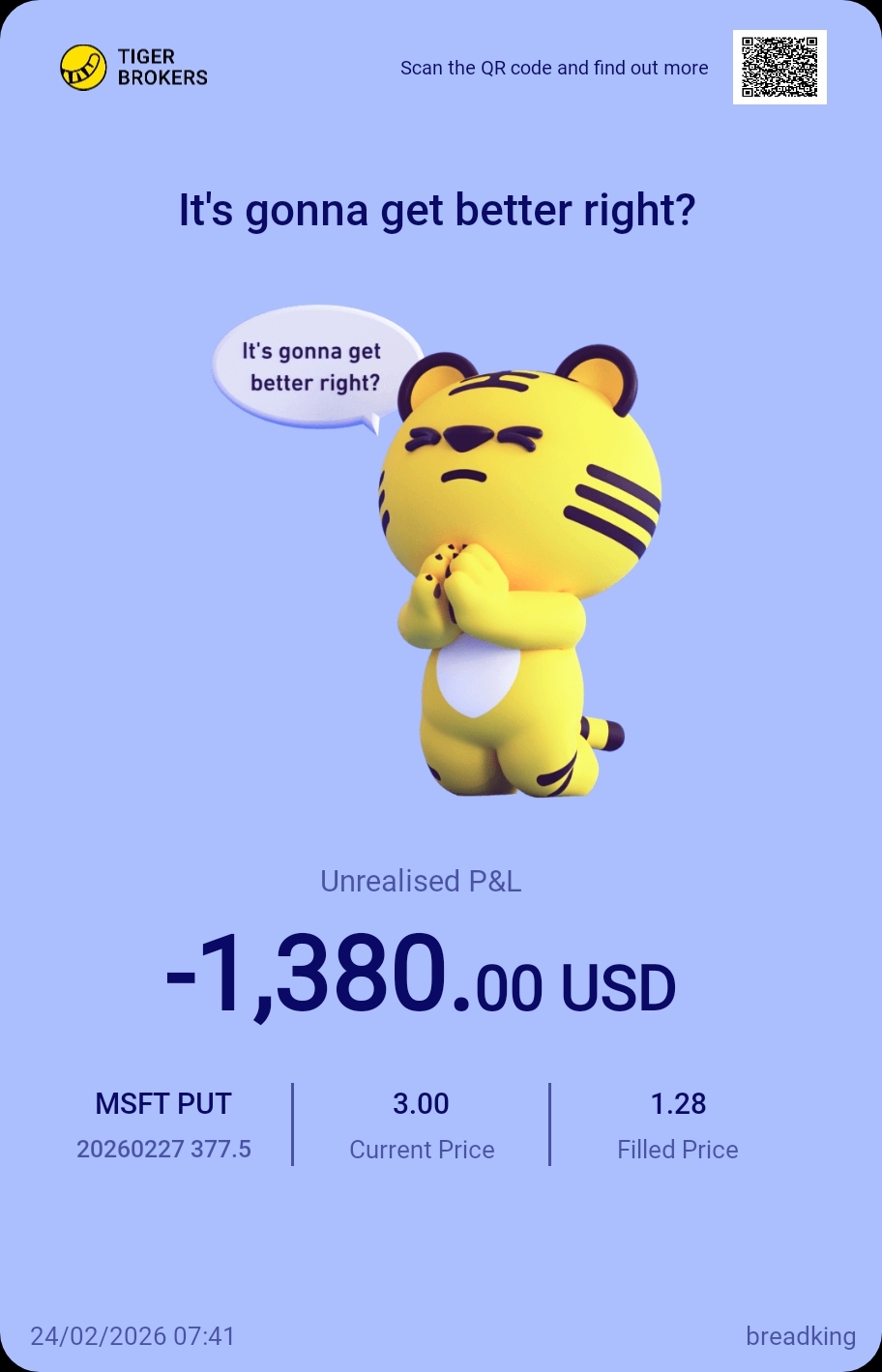 $MSFT 20260227 377.5 PUT$ can I survive till this Friday?