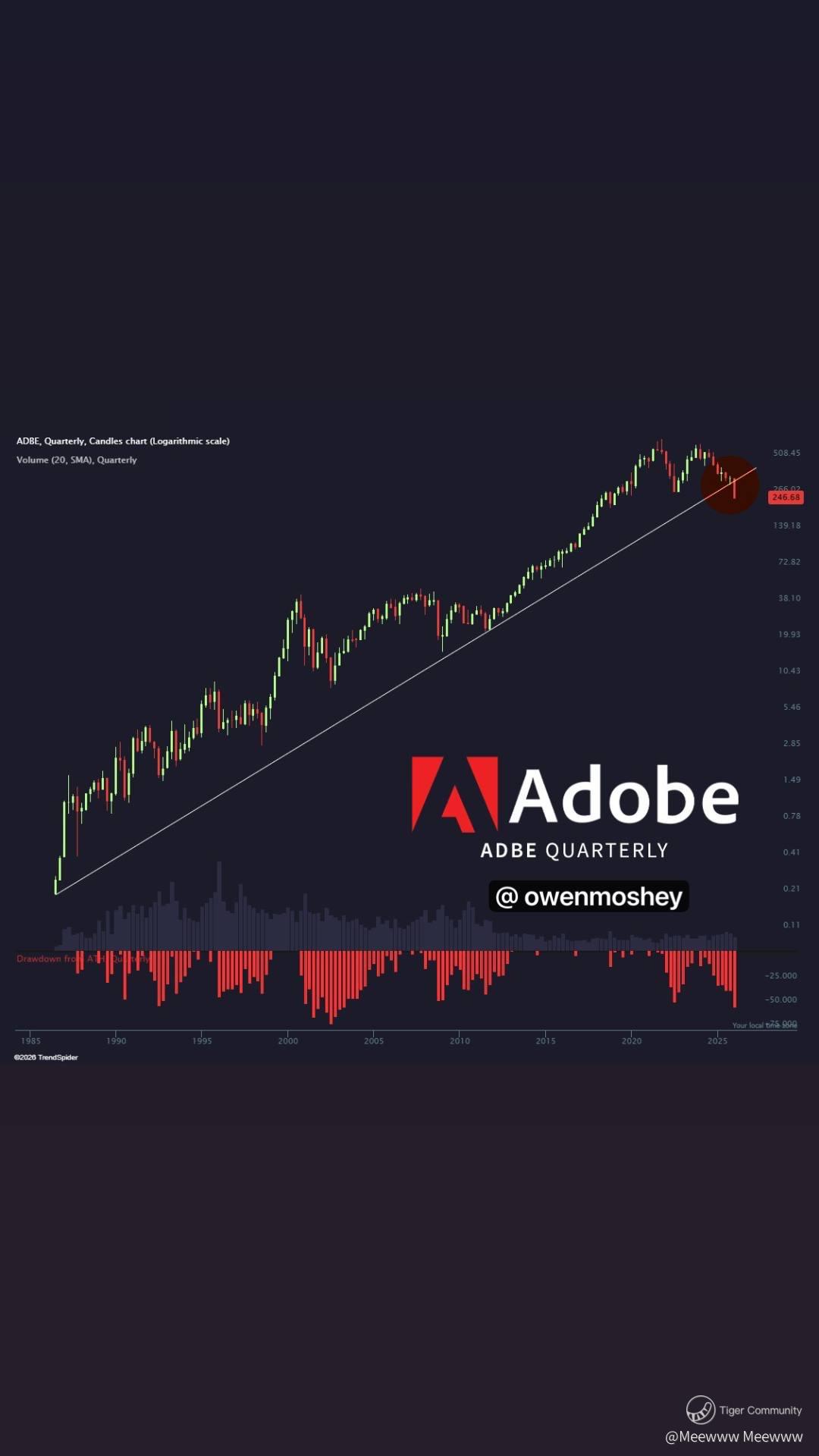 $Adobe(ADBE)$ breaks its all-time trend