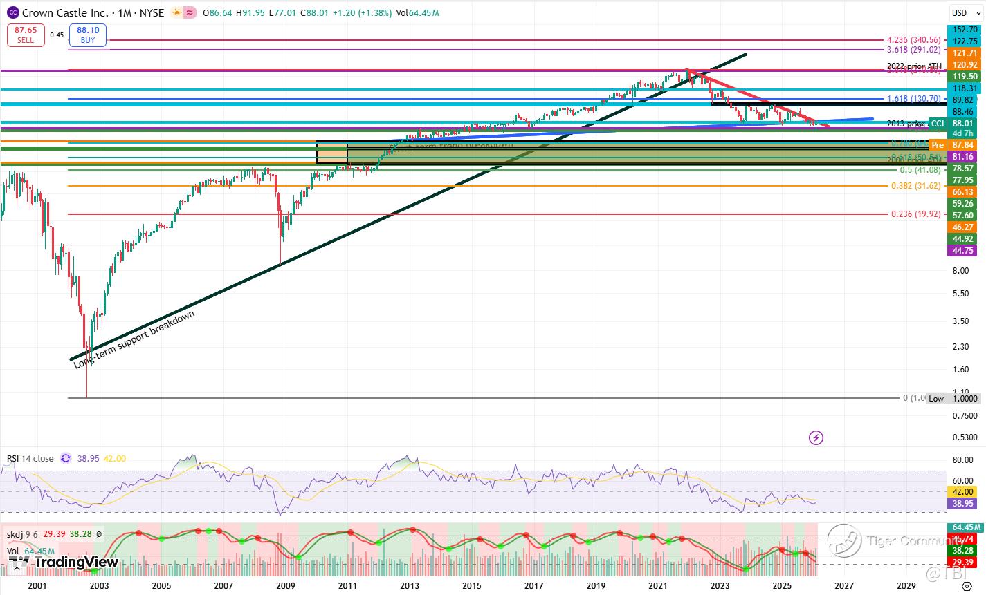 If CCI is able to breach resistance, flip this level and reclaim the blue support trendline, then it could potentially tange back into the 118-123 area of significant resistance.