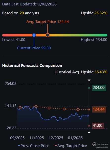 Based on 29 analysts from Tiger Brokers app offering 12 month price targets for CoreWeave in the last 3 months. The average price target is $124.44 with a high forecast of $234.00 and a low forecast of $41.00. The average price target represents a 25.32% change from the last price of $99.30.